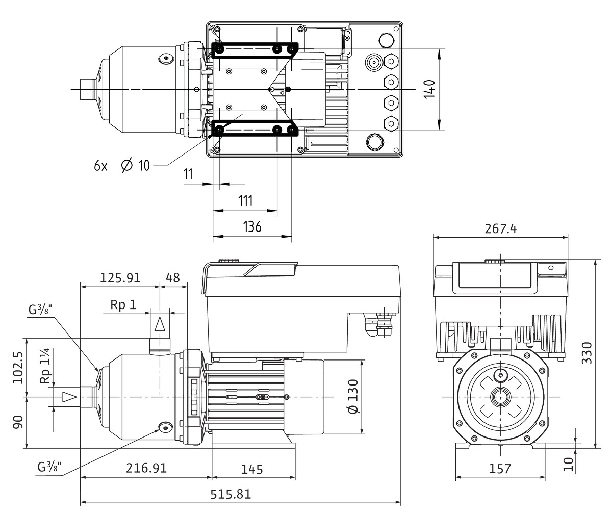 Wilo Hochdruck-Kreiselpumpe MEDANA CH3-LE.603-1/E/3/10T, Rp1¼ (PN 10), Rp1 (PN 10), 1.5kW, 1.69kW