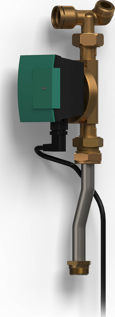 Set zum Einbau in der Station CAT-2 als Erweiterung für eine Trinkwasserzirkulation, bestehend aus: Zirkulationspumpe mit Leistungsaufnahme von 3-5 Watt, Rückschlagklappe, Verrohrung, Zeitschaltfunktion über CAT-2-Regelung serienmäßig, leichte Montage per Steckverbindung