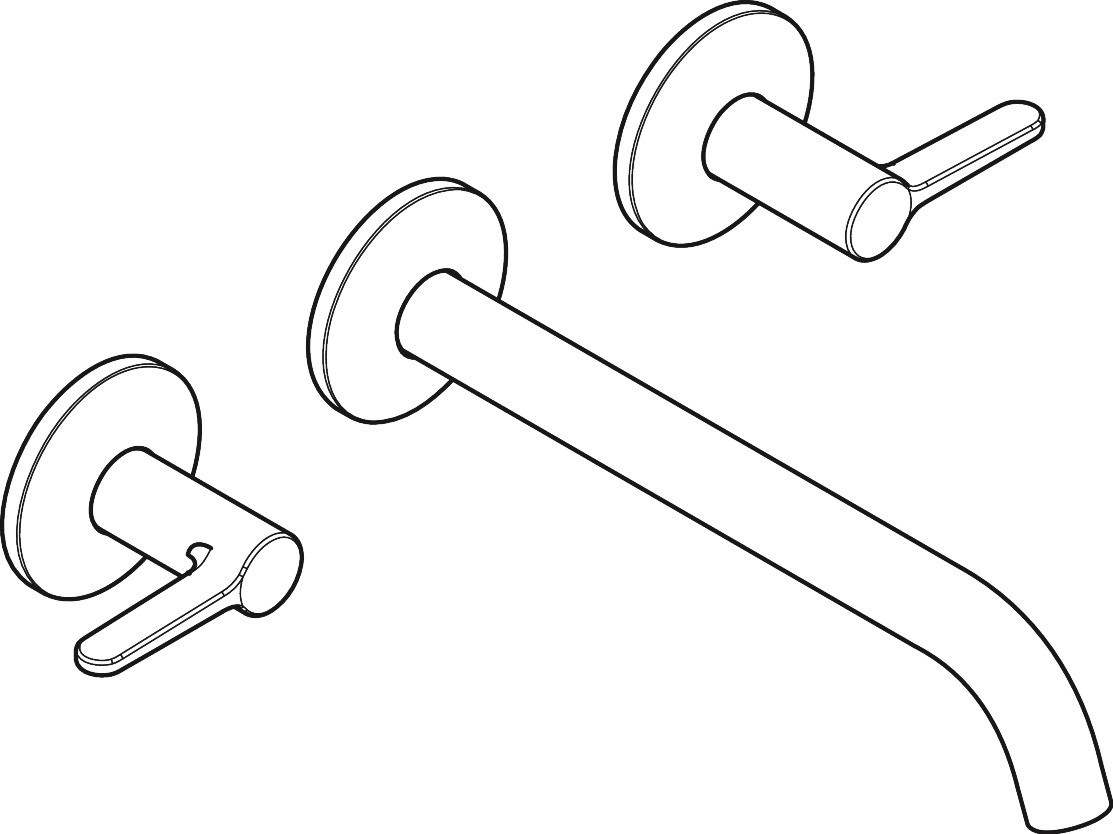 hansgrohe 3-Loch-Waschtisch-Armatur Axor One UP, Ausladung 220mm, Wandmontage mit Rosetten, mit Hebelgriff, brushed brass