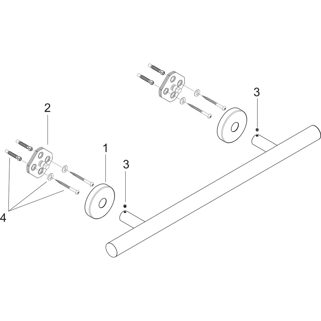 Halteelement aus Metall, mit Befestigungsmaterial, verdeckte Befestigung, Bohrabstand 600 mm, Durchmesser Bohrloch 6 mm