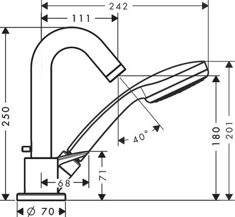 bestehend aus 3-Loch Einhebel-Wannenrandmischer, Handbrause, Brausehalter, 2 Verbraucher, für Secuflex, Ausladung 111 mm, Anschlussart Grundkörper, Strahlart Armatur Normalstrahl, Strahlart Handbrause Rain, max. Ausziehlänge Handbrause 110 cm, Durchfluss für Wanneneinlauf bei 3 bar 18 l/min, Durchfluss für Handbrause bei 3 bar 15 l/min, Mindestfließdruck 1 bar, Keramikmischsystem, Temperaturbegrenzung einstellbar, Rückflussverhinderer, Anschlussgröße DN 15, AirPower Technologie