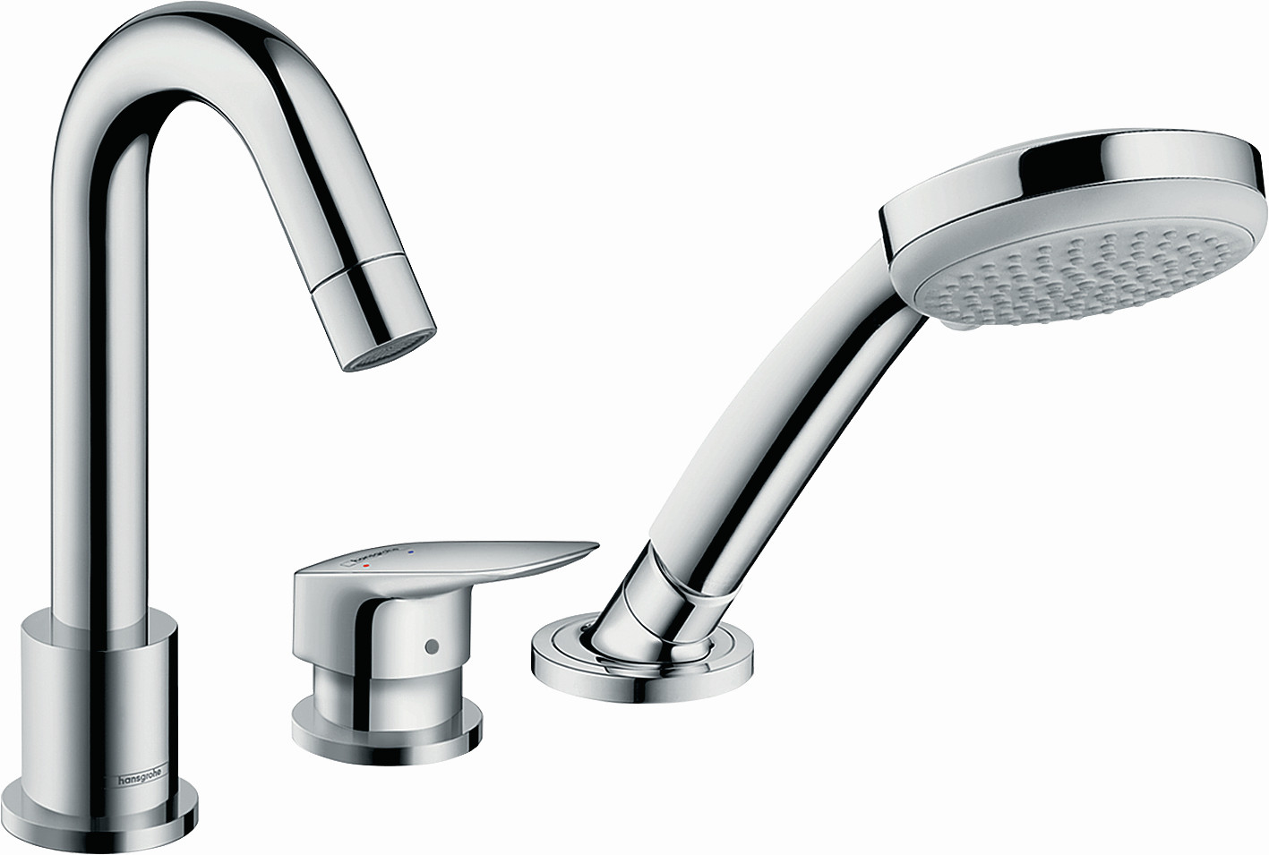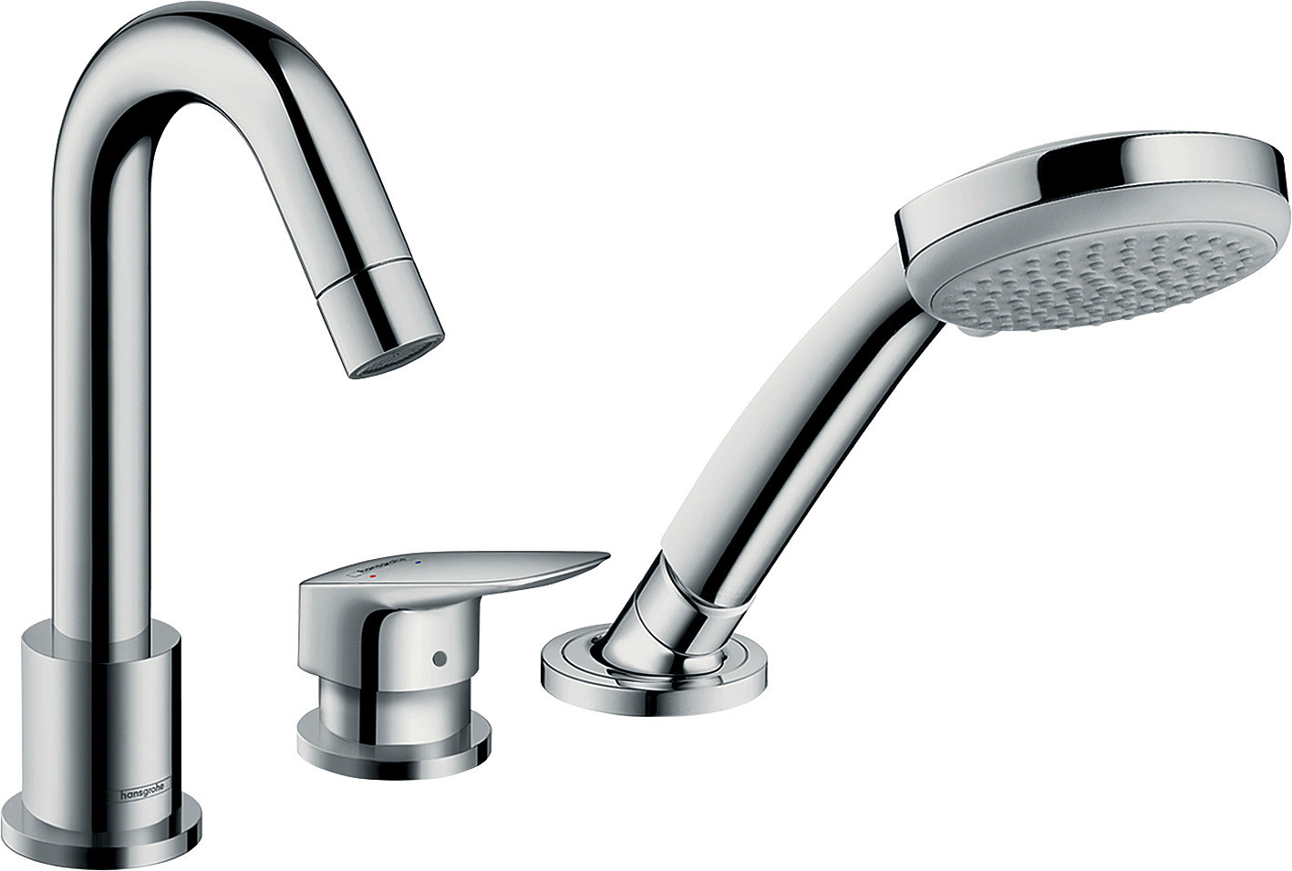 hansgrohe Fertigmontageset Logis 3-Loch-Wannenrand-Einhebelmischer, chrom