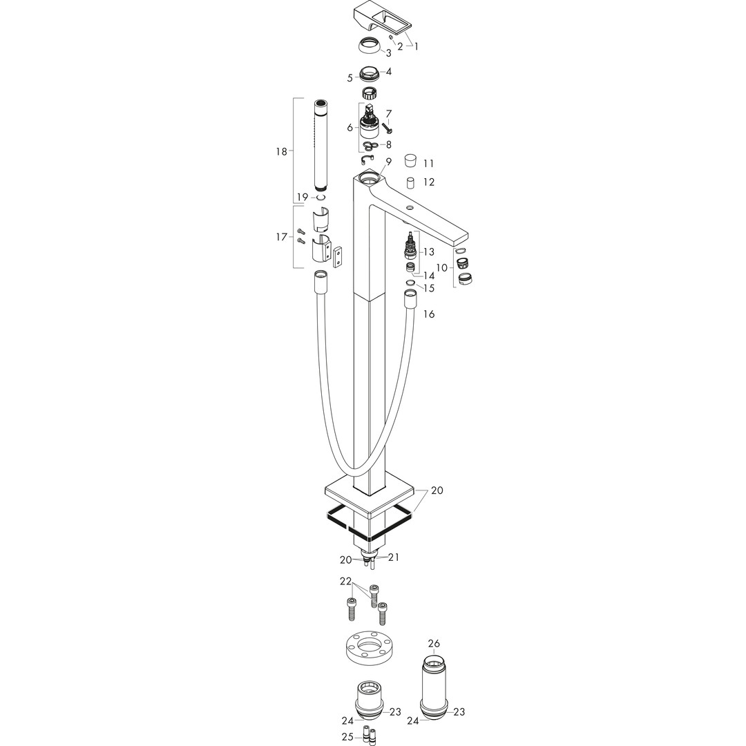 bestehend aus Einhebel-Wannenmischer, bodenstehend, Stabhandbrause, Brauseschlauch, Brausehalter, 2 Verbraucher, Strahlart Armatur: Normalstrahl, Strahlart Handbrause: Rain, MonoRain, max. Durchflussmenge bei 3 bar: 20 l/min, Durchfluss für Wanneneinlauf bei 3 bar 20 l/min, Keramikmischsystem, Betriebsdruck min. 1/max. 10 bar, Temperaturbegrenzung einstellbar, Umsteller mit automatischer Rückstellung, Rückflussverhinderer, Anschlussgröße DN 15, Anschlussart Grundkörper, Air Power Technologie, Quick Clean Antikalksystem