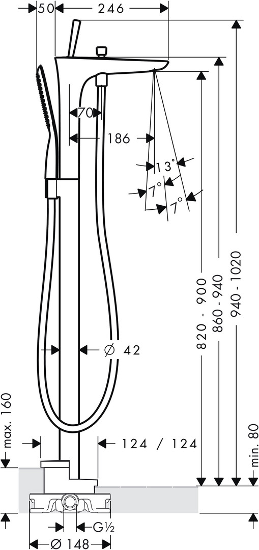 hansgrohe Fertigmontageset PuraVida Wannen-Einhebelmischer, bodenstehend, chrom HG15473000