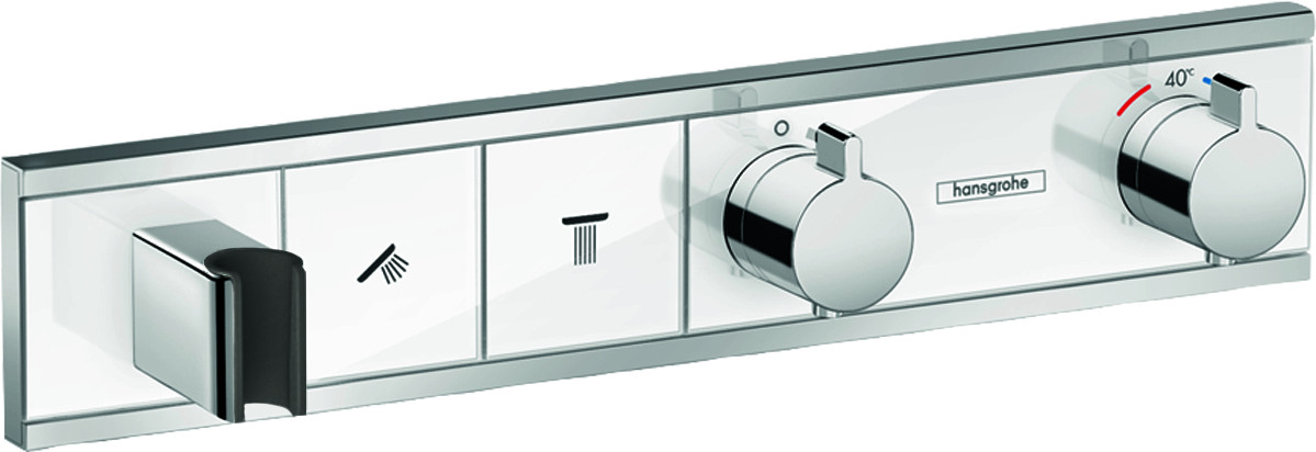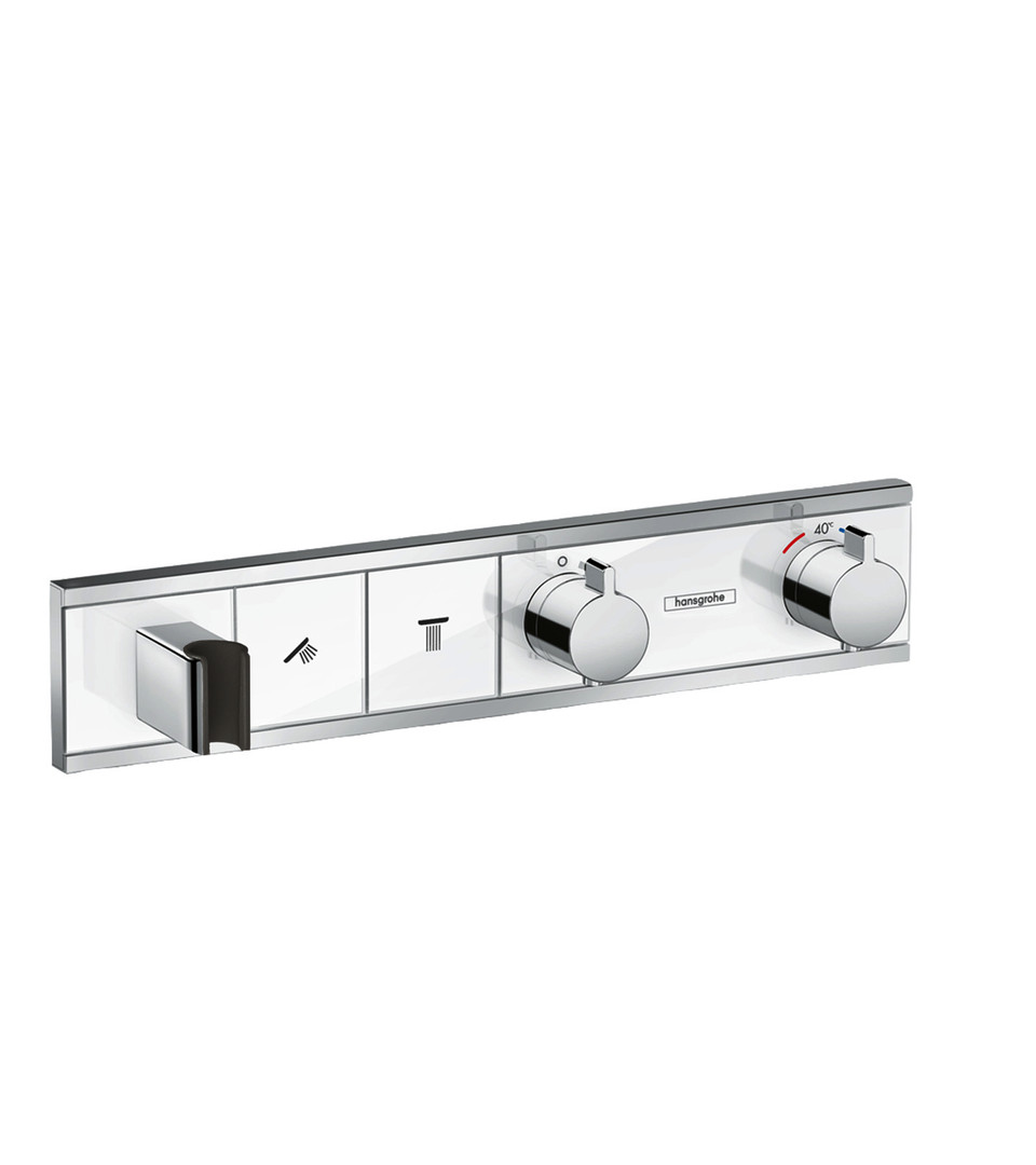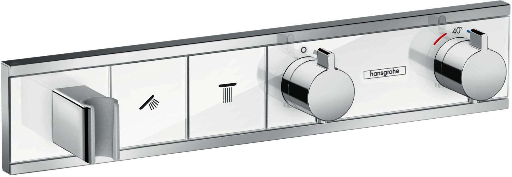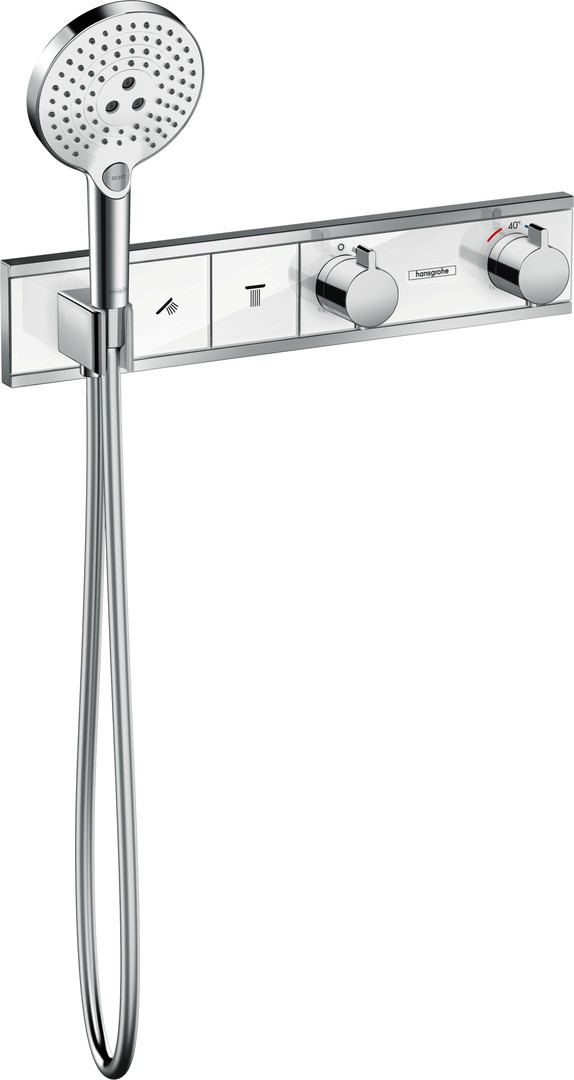 hansgrohe Fertigmontageset RainSelect UP-Thermostat, mit integriertem Brausehalter, 2 Verbraucher, weiß/chrom