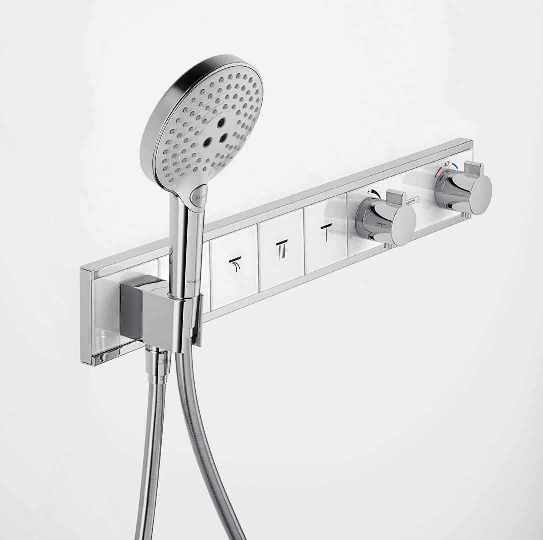 hansgrohe Fertigmontageset RainSelect UP-Thermostat, mit integriertem Brausehalter, 4 Verbraucher, weiß/chrom