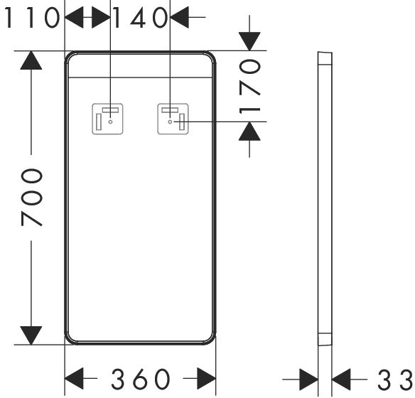 hansgrohe Spiegel Xarita Lite Q mit horizontaler LED-Beleuchtung, mattschwarz, B 360 x H 700 x T 30 mm, 4 W HG54955670