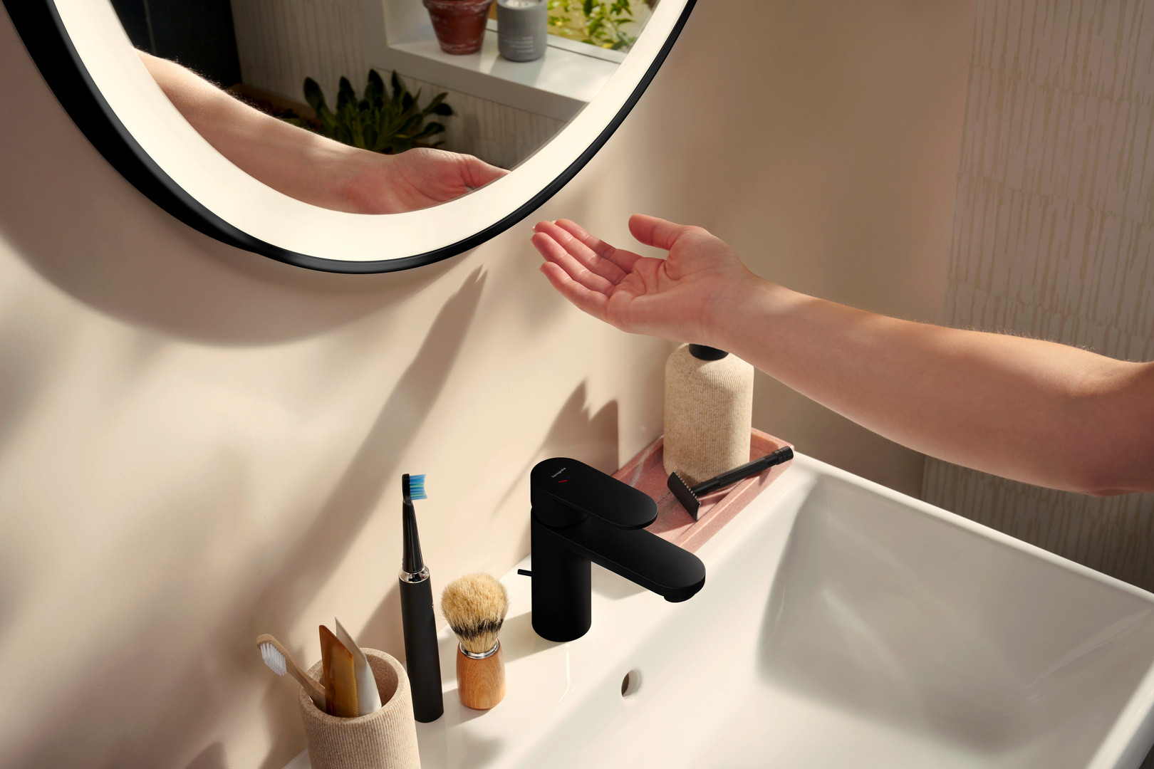 hansgrohe Spiegel Xarita Lite Q mit runder LED-Beleuchtung, IR Sensor, B 900 x H 900 x T 30 mm, 26 W, mattschwarz HG54980670