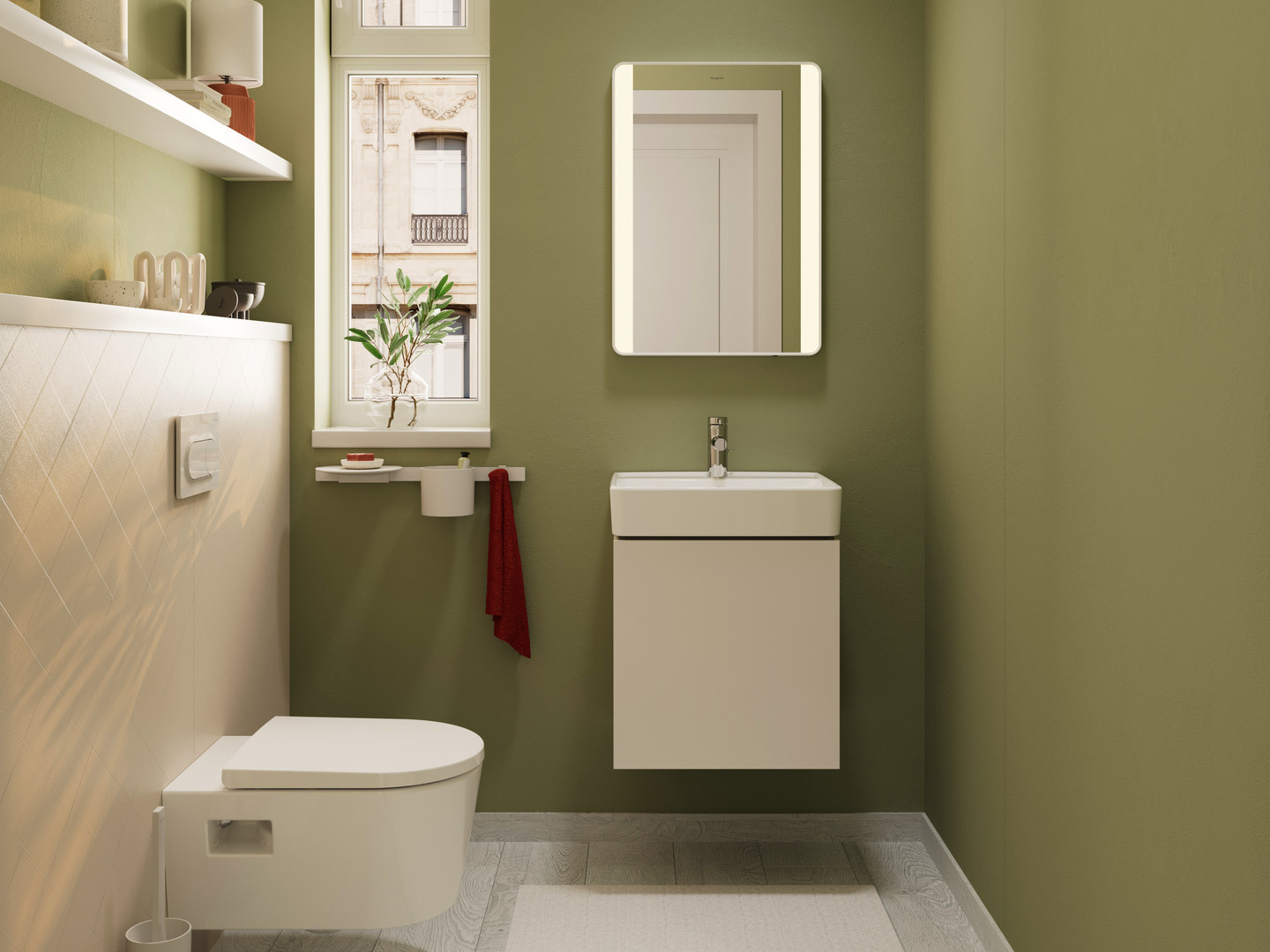 hansgrohe Spiegel Xarita Lite Q mit seitlicher LED-Beleuchtung, IR Sensor, B 600 x H 700 x T 30 mm, 14 W, mattweiß HG54975700
