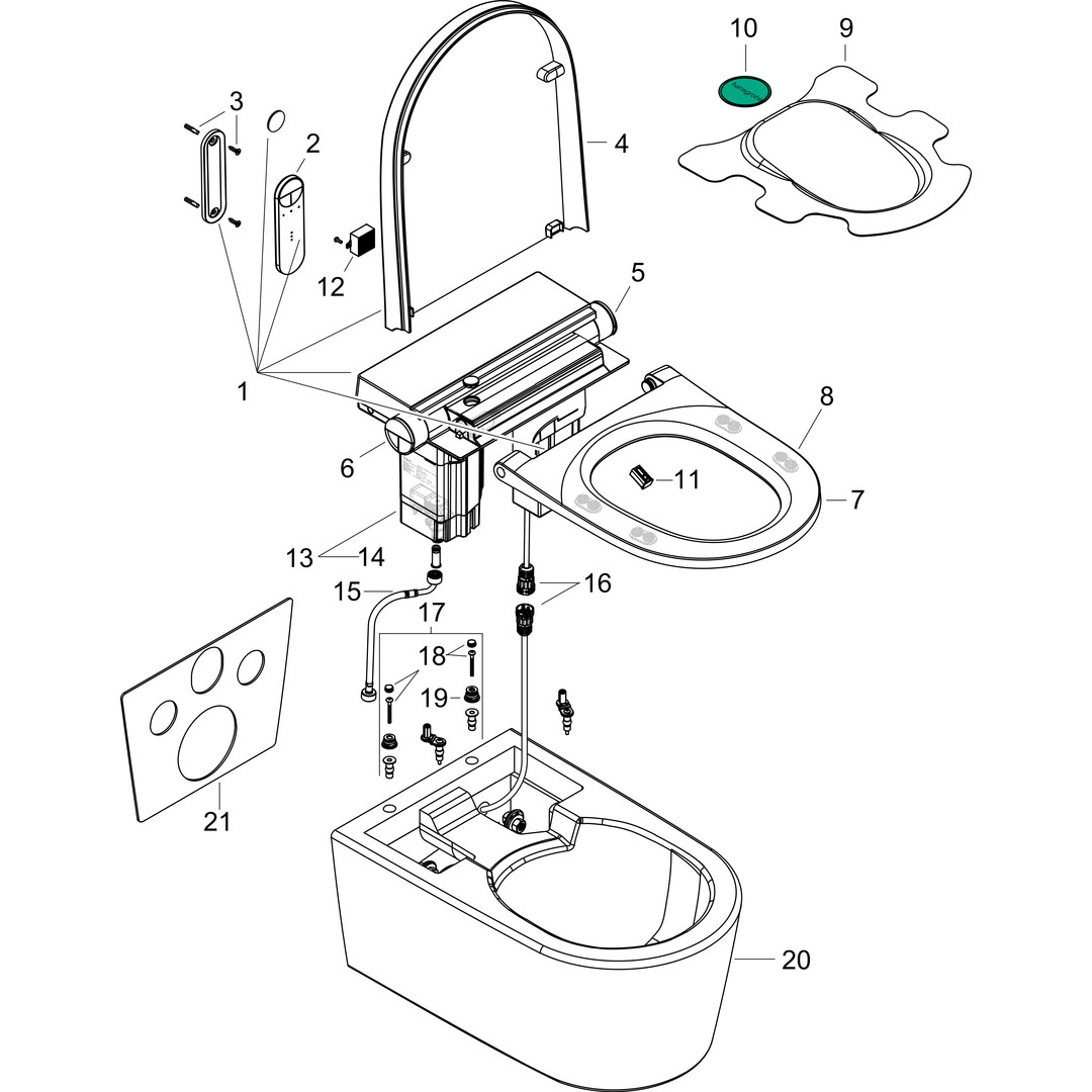 bestehend aus Dusch-WC, WC-Sitz, Fernbedienung, Schallschutzmatte nach Maß, mit Elektroanschluss, Material WC Keramik, Material WC-Sitz Brille Urea, Deckel PP, Material Fernbedienung Plastik, Glanzgrad glänzend, spülrandlos, max. 6 l/min., Anschlussspannung AC 220-240V 50/60Hz, Strahlart RearWash, LadyWash, Pulsation, Oscillation, einstellbare Intensität des Duschstrahls (3 Stufen), einstellbare Duschstabposition (3 Positionen), einstellbare Wassertemperatur (4 Stufen), Auto Open komfortable berührungslose Bedienung des Deckels, Warmlufttrockner mit individuell einstellbarer Temperatur (4 Stufen), Odor Extraction: reduziert unerwünschte Gerüche, Sitzheizung mit einstellbarer Temperatur (4 Stufen), komfortable Strahlarten Bedienung über Select-Taste, User Profiles individuelles Wassererlebnis auf Abruf, UV Disinfection, mehr Hygiene dank UV-Desinfektion, selbstreinigender Edelstahl-Duschstab, vor und nach Nutzung, LED-Nachtlicht, Stromsparmodus (Eco Mode) beendet die Sitzheizung nach 48 Std. Nichtnutzung, QuickRelease abnehmbarer WC-Sitz, SoftClose WC-Sitz mit Absenkautomatik
