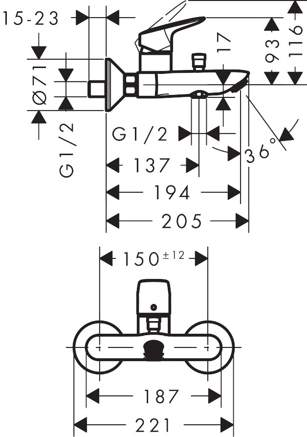 | Mittenabstand | 150 mm |