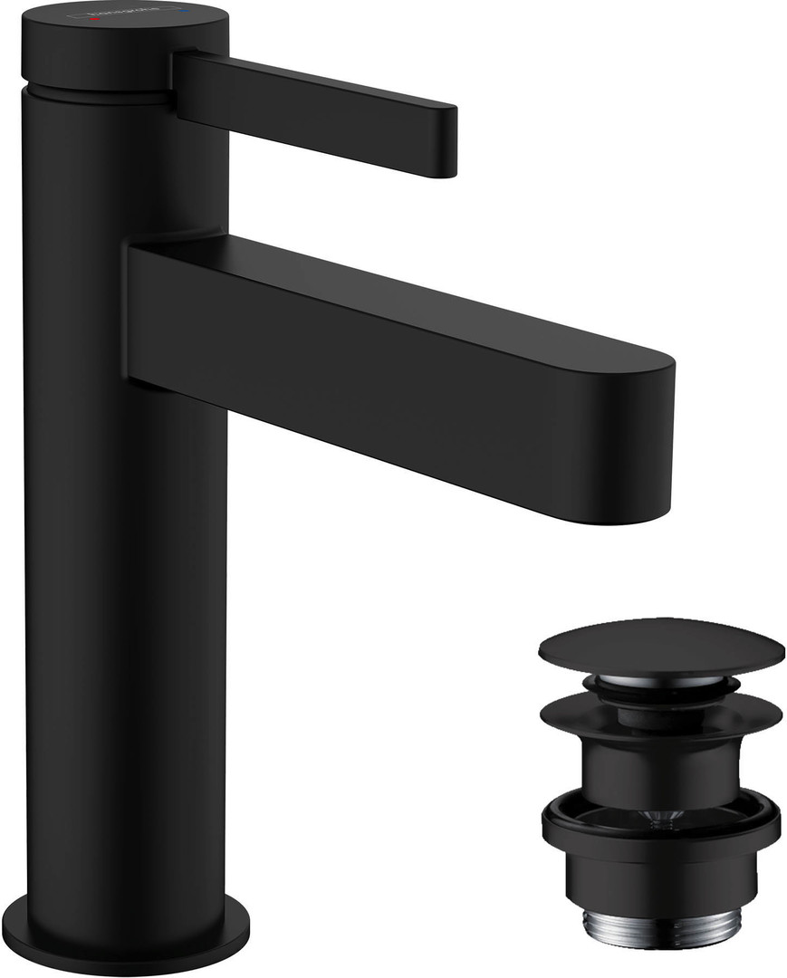 hansgrohe Waschtisch-Einhebelmischer 110 Finoris mit Push-Open-Ablaufgarnitur, schwarz matt