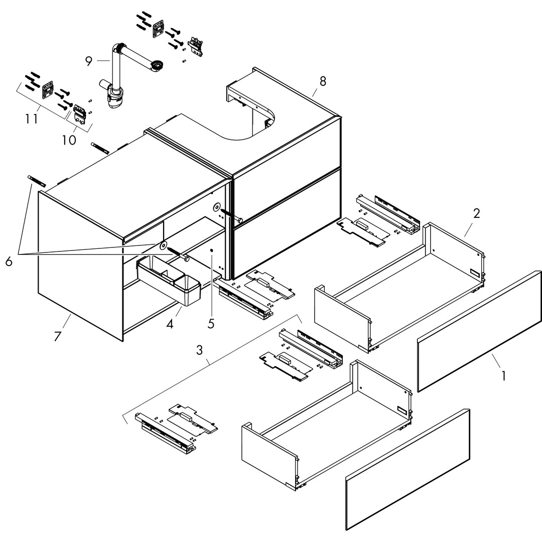 für Konsolen mit Aufsatzwaschtisch, geschliffen, Korpus: MDF, Oberfläche Korpus: Lack, Frontrahmen: Aluminium, Oberfläche Frontrahmen: Pulverlack, SmoothSurface, AntiFingerprint, Moisture Proof, grifflos, PushOpen-Funktion, Vollauszug, ohne Siphonausschnitt, SoftClose, Inneneinteilung, mit Basis Boxen Set, mit Raumsparsiphon Sperrwasserhöhe 50 mm, Wandmontage, vormontiert, mit Befestigungsmaterial, Wechseln der Fronten möglich