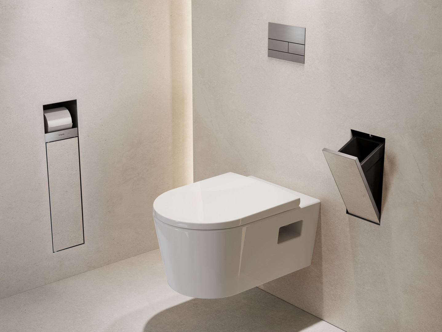 hansgrohe XtraStoris Rock Einbau-Abfalleimer 300x150x140mm, mit befliesbarer Tür, Edelstahl Optic HG56063800