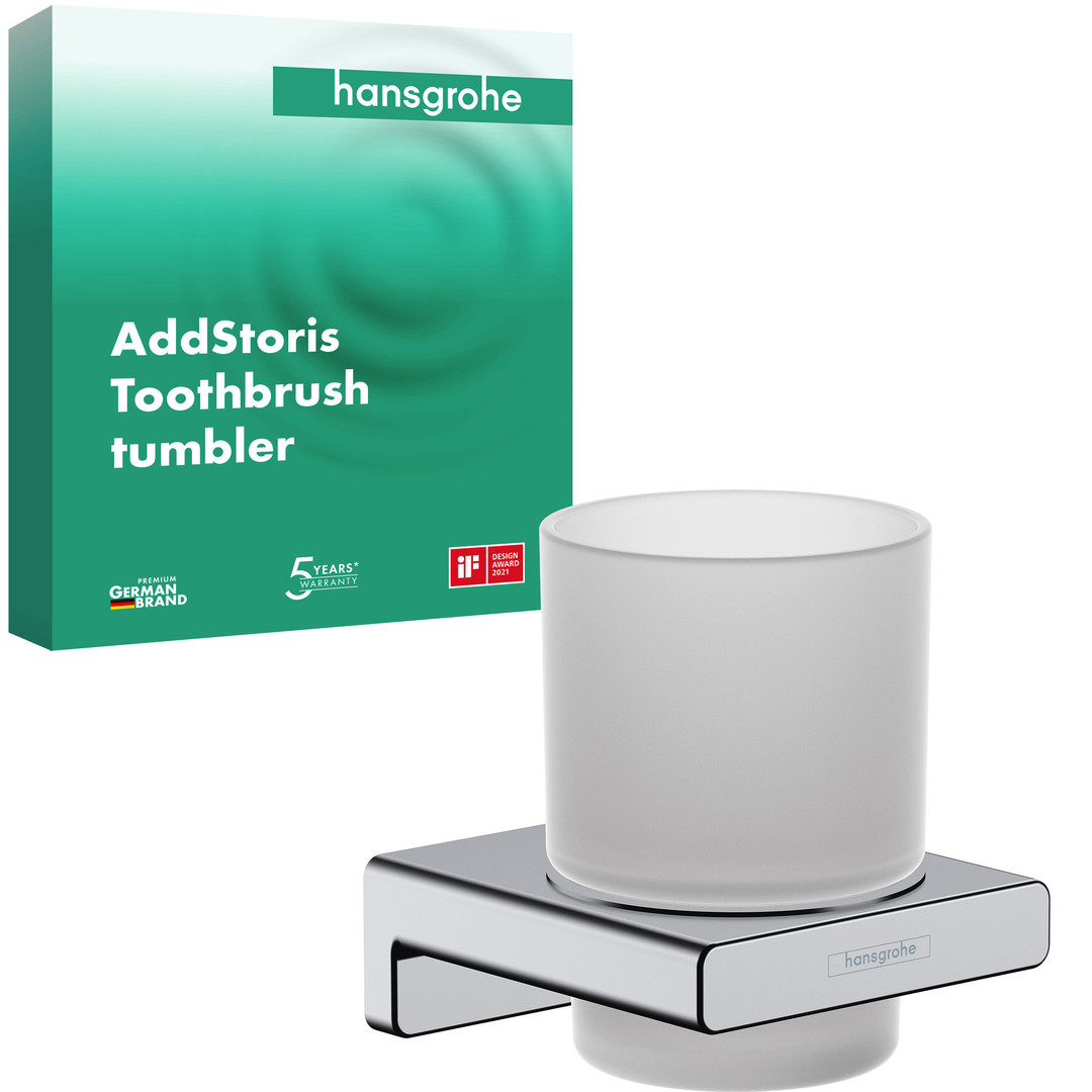 hansgrohe Zahnbecher AddStoris mit Glas, Wandmontage, Metall, chrom HG41749000
