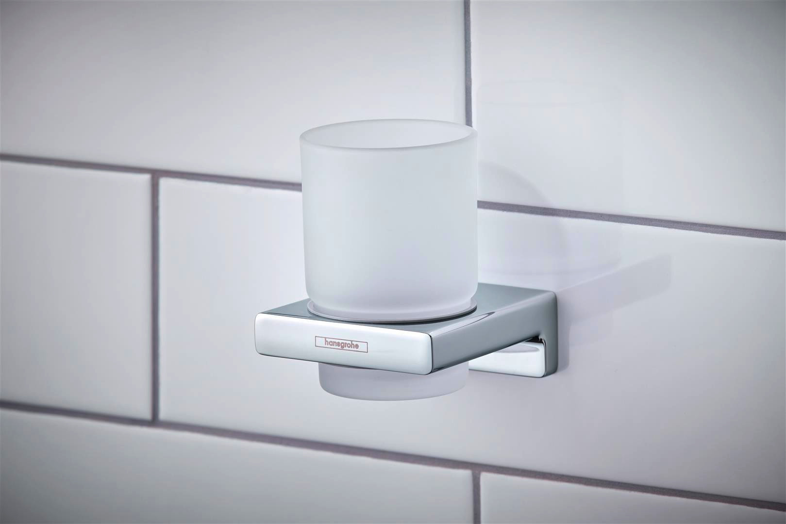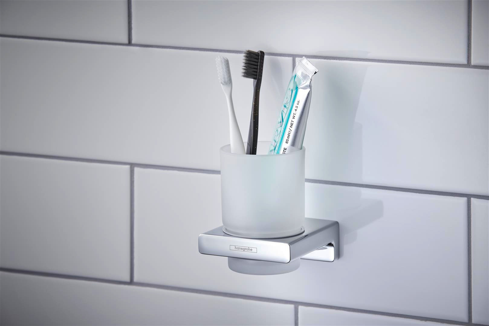 hansgrohe Zahnbecher AddStoris mit Glas, Wandmontage, Metall, chrom
