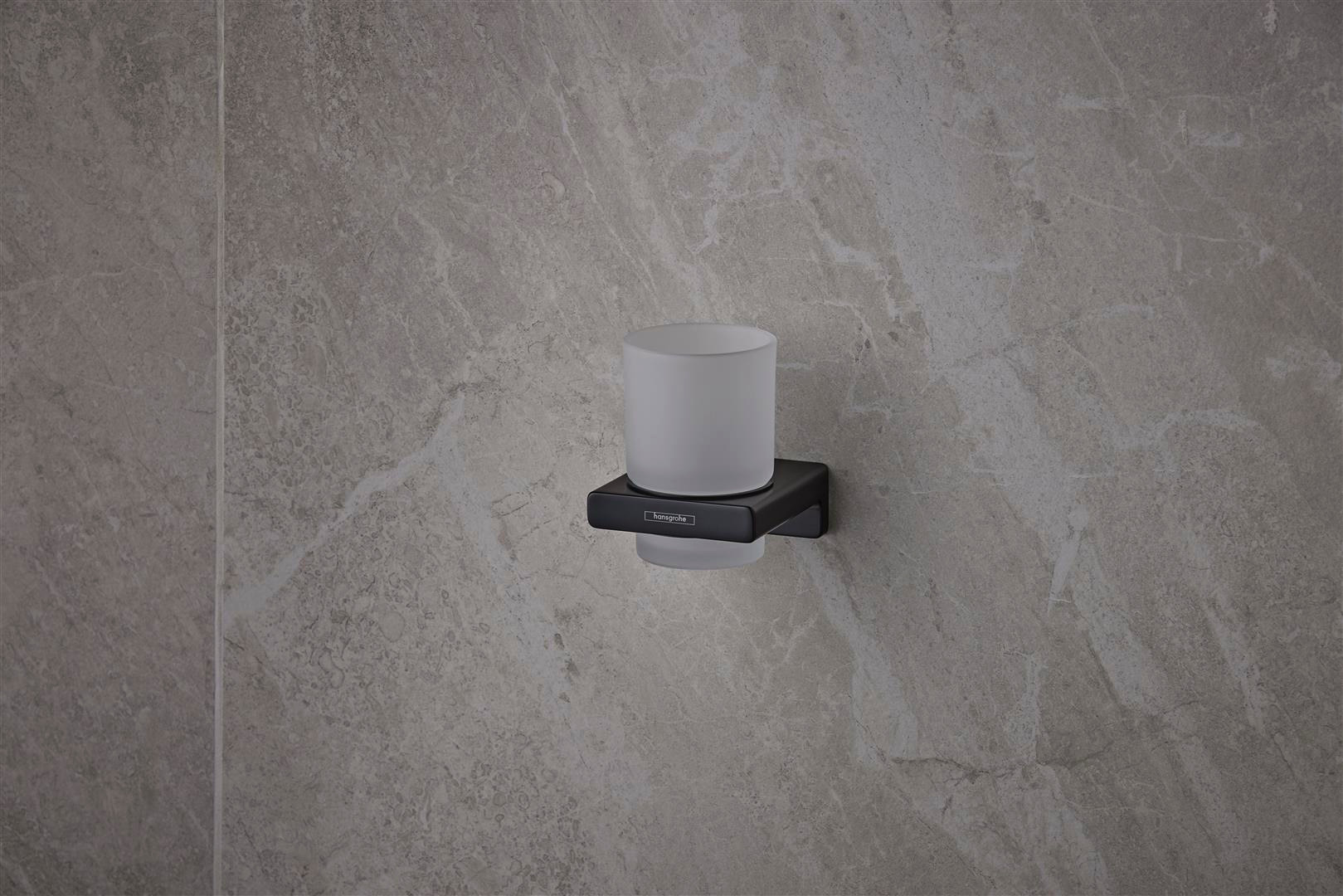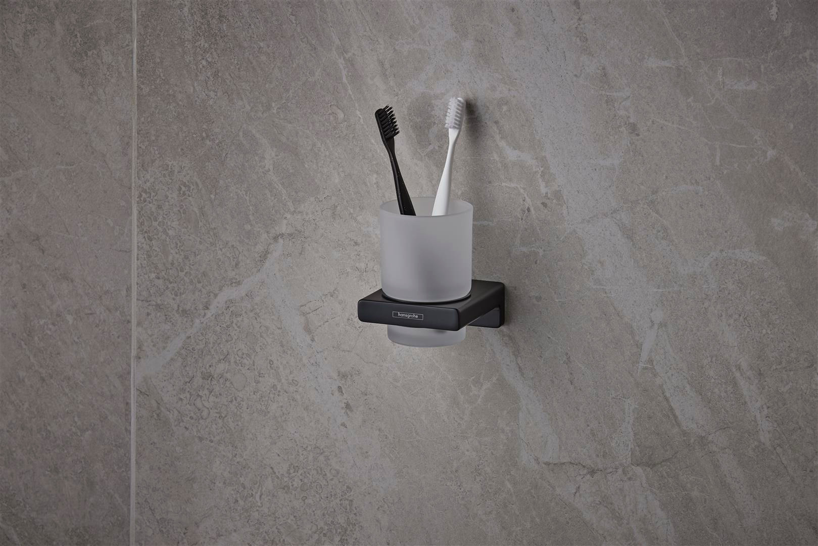 hansgrohe Zahnbecher AddStoris mit Glas, Wandmontage, Metall, mattschwarz