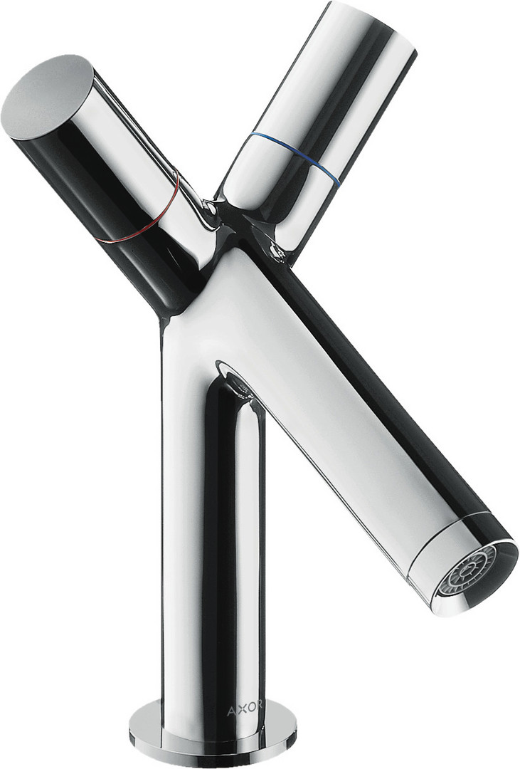 hansgrohe Zweigriff-Waschtisch-Armatur 80 Axor Starck Ausladung 105mm, mit Hebelgriff, Zugstangen-Ablaufgarnitur, chrom