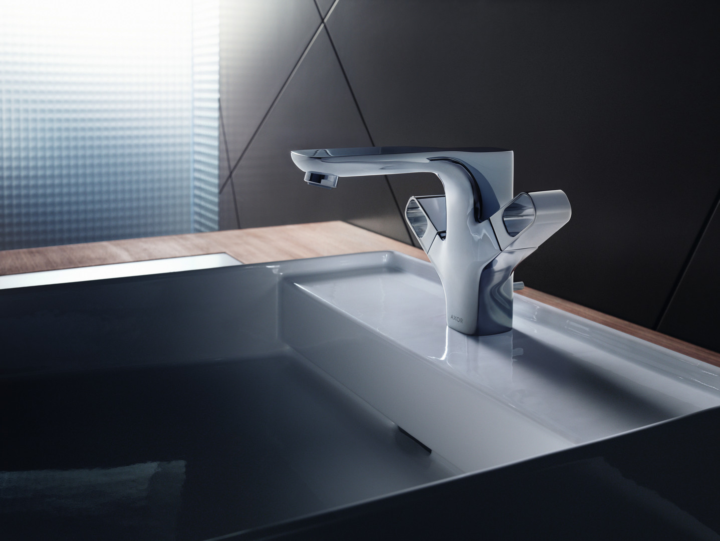 hansgrohe Zweigriff-Waschtischarmatur 120 Axor Urquiola Ausladung 139mm, mit Zugstangen-Ablaufgarnitur, chrom