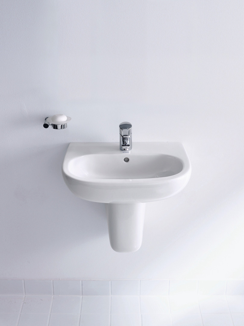 Duravit Waschtisch D-Code 55 x 43 cm, mit Hahnloch, Überlauf, Hahnlochbank, weiß