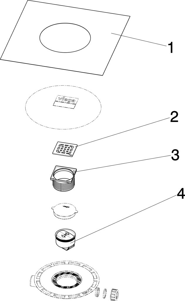 Viega Badablauf Advantix 4936.4 Aufsatz mit Rahmen aus Edelstahl, DN 50, geruchsicher VI617288