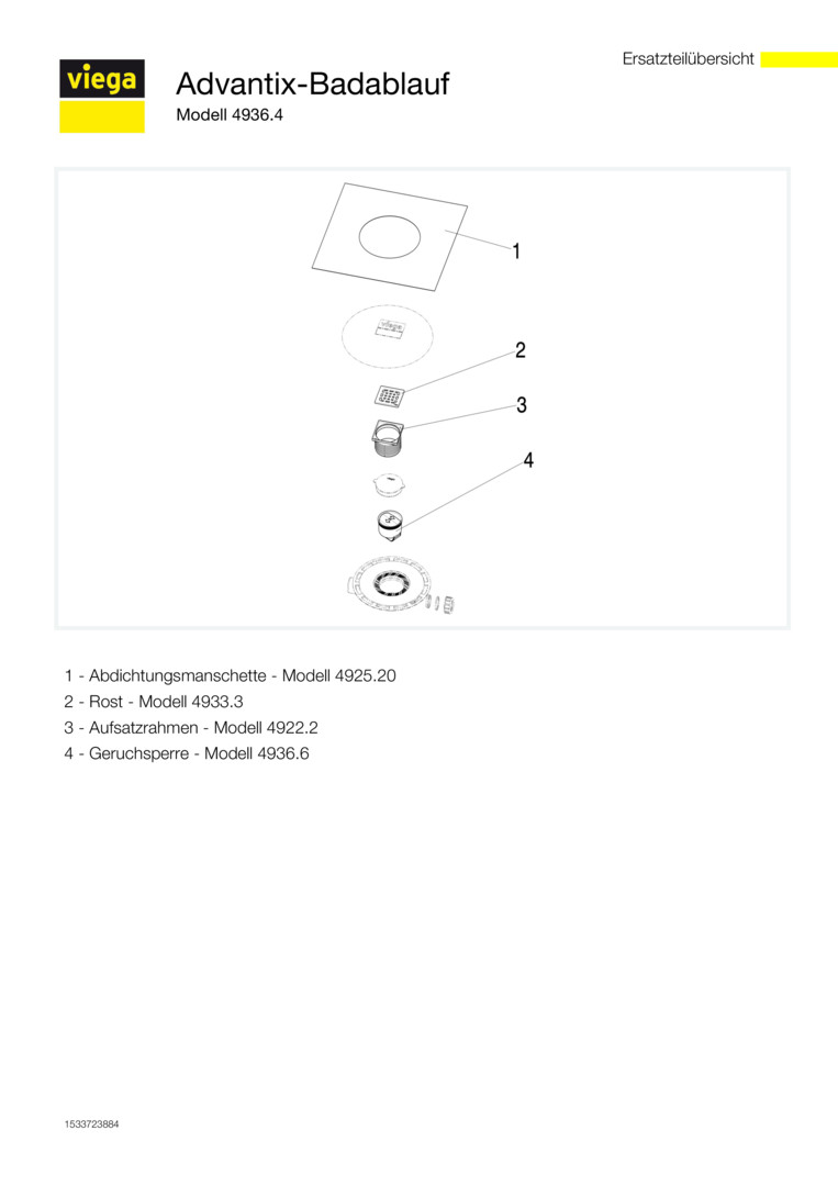 Viega Badablauf Advantix 4936.4 Aufsatz mit Rahmen aus Kunststoff, DN 50, geruchsicher VI583231