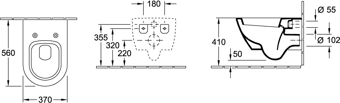 V&B Wand-Tiefspül-WC Subway 2.0 37x56cm, mit Befestigungssatz, weiß VB56001001