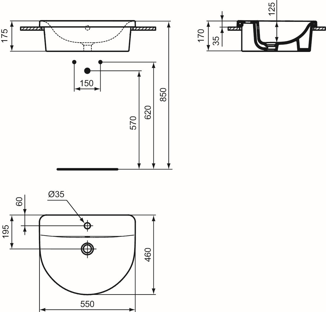 Ideal-Standard Einbauwaschtisch Connect 55x 46x17,5 cm, weiß, mit Hahnloch/Überlauf ISE797801