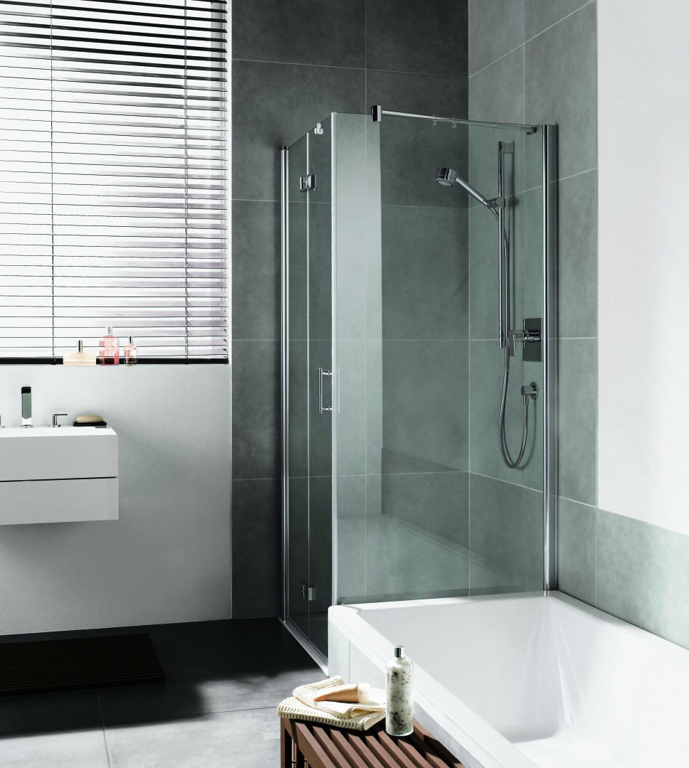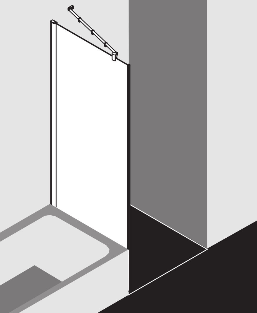 Kermi Seitenwand Diga verkürzt 100 x 175 cm, silber hochglanz, ESG klar, neben Badewanne