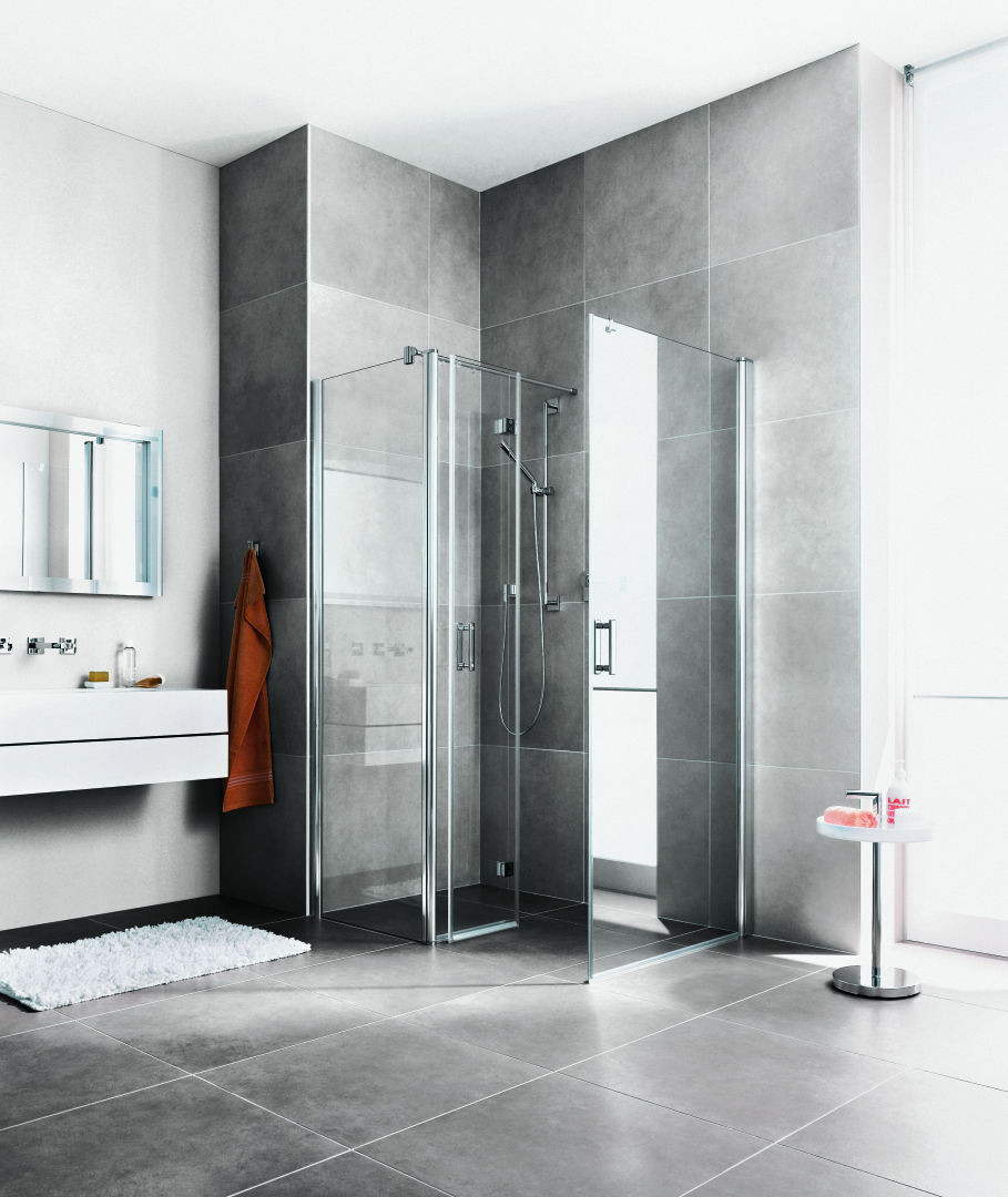 Kermi Eckeinstiegshälfte Diga Pendeltür 100 x 200 cm, silber hochglanz, ESG klar, links, auf Duschwanne