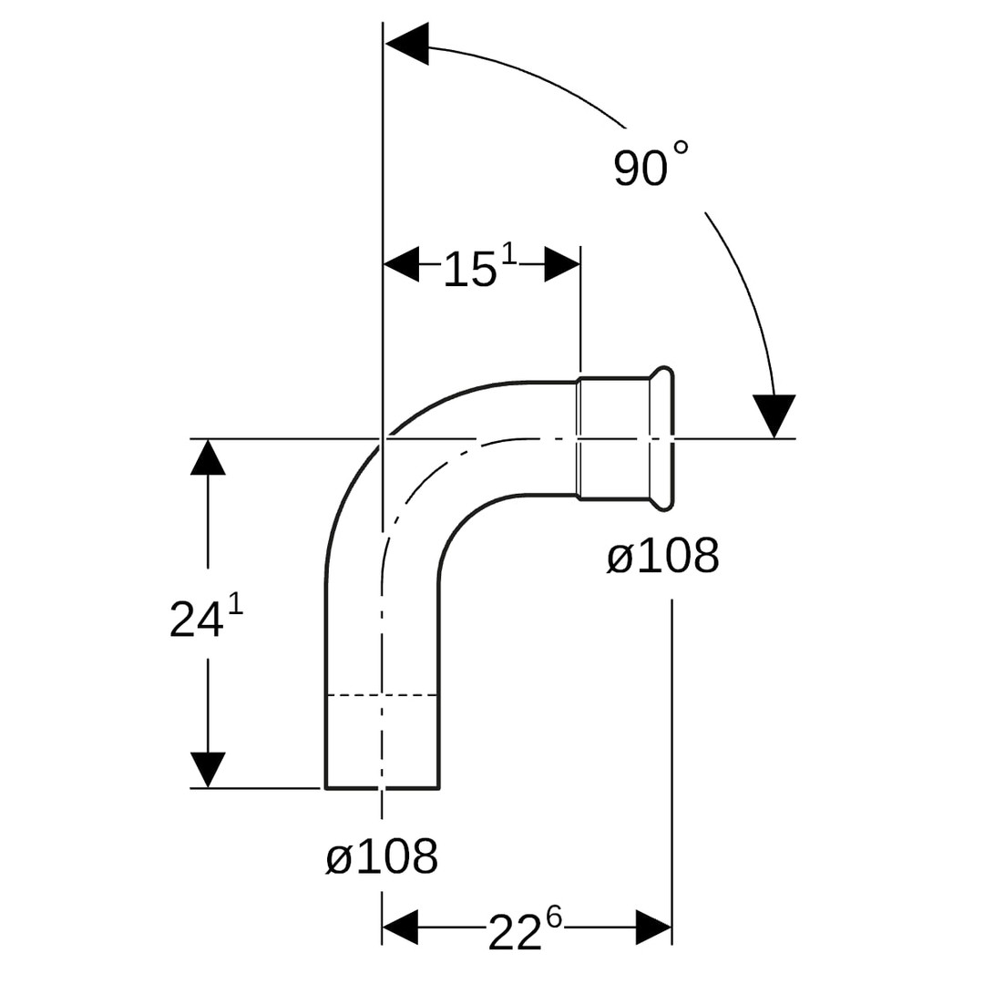Geberit Bogen Mapress Ø 108 mm, 90°, mit Einschubende, Edelstahl