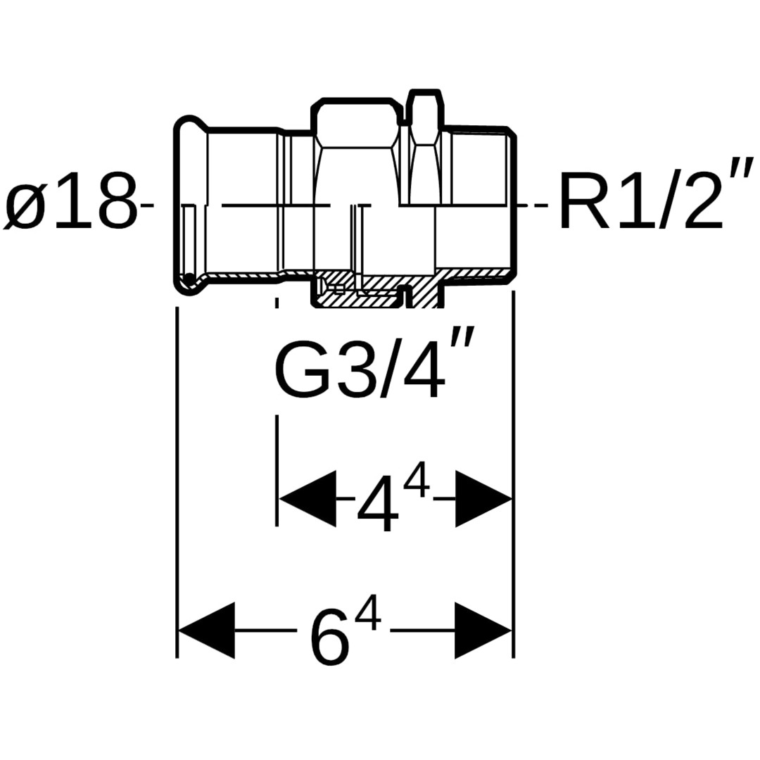 Geberit Übergangsverschraubung Mapress Ø 18 mm x R 3/4, Überwurfmutter/CrNi-Stahl, mit Außengewinde, Edelstahl GE35363