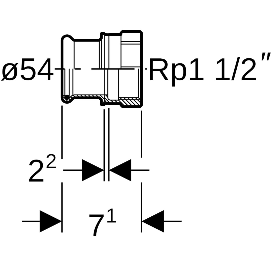 Geberit Übergangsmuffe Mapress Ø 54 mm x Rp 1 1/2, LABS-frei, mit Innengewinde, Edelstahl