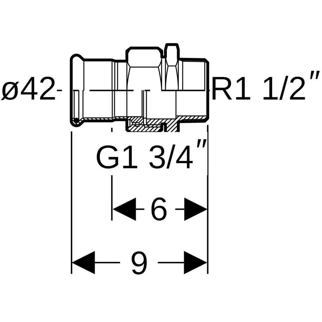 Geberit Übergangsverschraubung Mapress Ø 42 mm x R 1 1/2, LABS-frei, Überwurfmutter/CrNi-Stahl, mit Außengewinde, Edelstahl