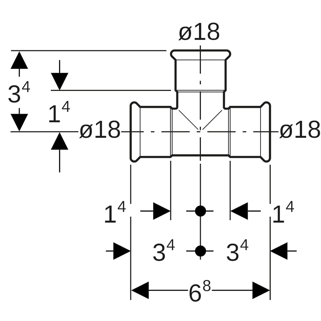 Geberit Gas-T-Stück Mapress Ø 18 mm, egal, für Natur- und Flüssiggas, Kupfer GE34529