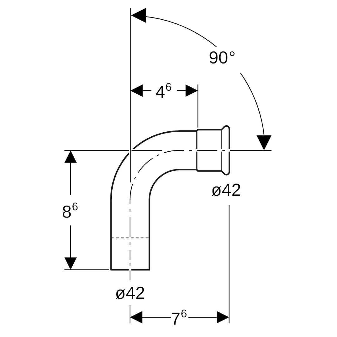 Geberit Bogen Mapress Ø 42 mm, 90°, mit Einschubende, Kupfer