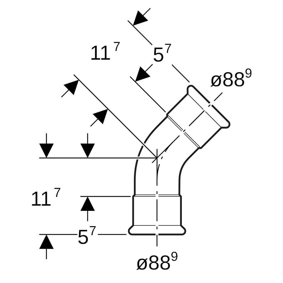 | Rohraußendurchmesser Anschluss 2 | 88,9 mm |