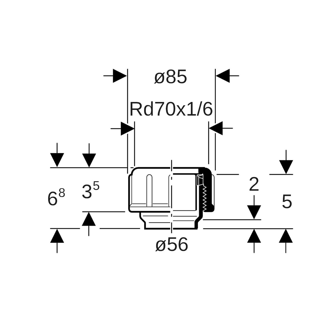 Geberit Gewindestutzen PE DN 70, mit Quetschverschraubung und Schutzdeckel, PE-HD GE365740161
