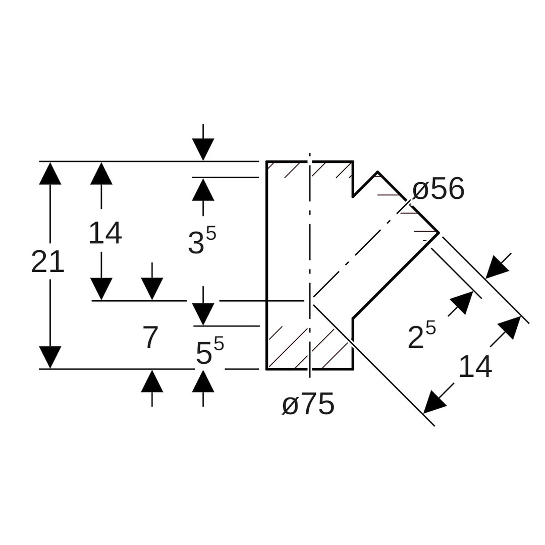| Rohraußendurchmesser Anschluss 1 | 75 mm |