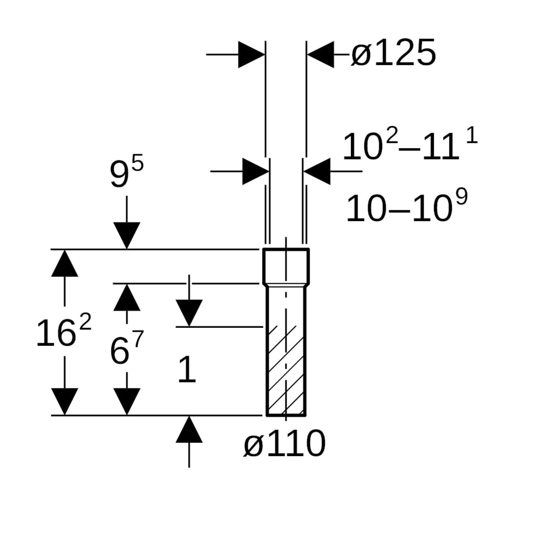 | Rohraußendurchmesser Anschluss 1 | 110 mm |
