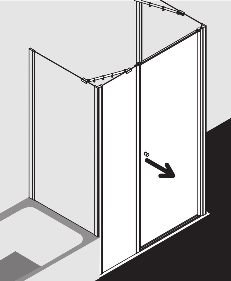 zum Einbau in einer Nische und zur Kombination festfeldseitig mit I2 TWO Seitenwand/Seitenwand gekürzt auf Badewanne, teilgerahmt, mit einem Glasflügel, nach außen öffnend und einem Festfeld, mit Stabilisierung (innen), zusätzliche Stabilisierung mit Zugstab, Glasstärke 6 mm Einscheiben-Sicherheitsglas nach EN 12150, optional mit Pflegeleicht-Beschichtung, Profile aus eloxiertem Aluminium, Griffe aus Kunststoff, Verstellmöglichkeit je Wandprofil 17,5 mm, durchgehende Magnetleisten und Dichtprofile, mit Bodenschwelle (Höhe 16 mm), Installation immer mit Bodenschwelle, mit Befestigungsmaterial, geprüft nach DIN EN 14428, Schräge waagerecht max. 5 mm