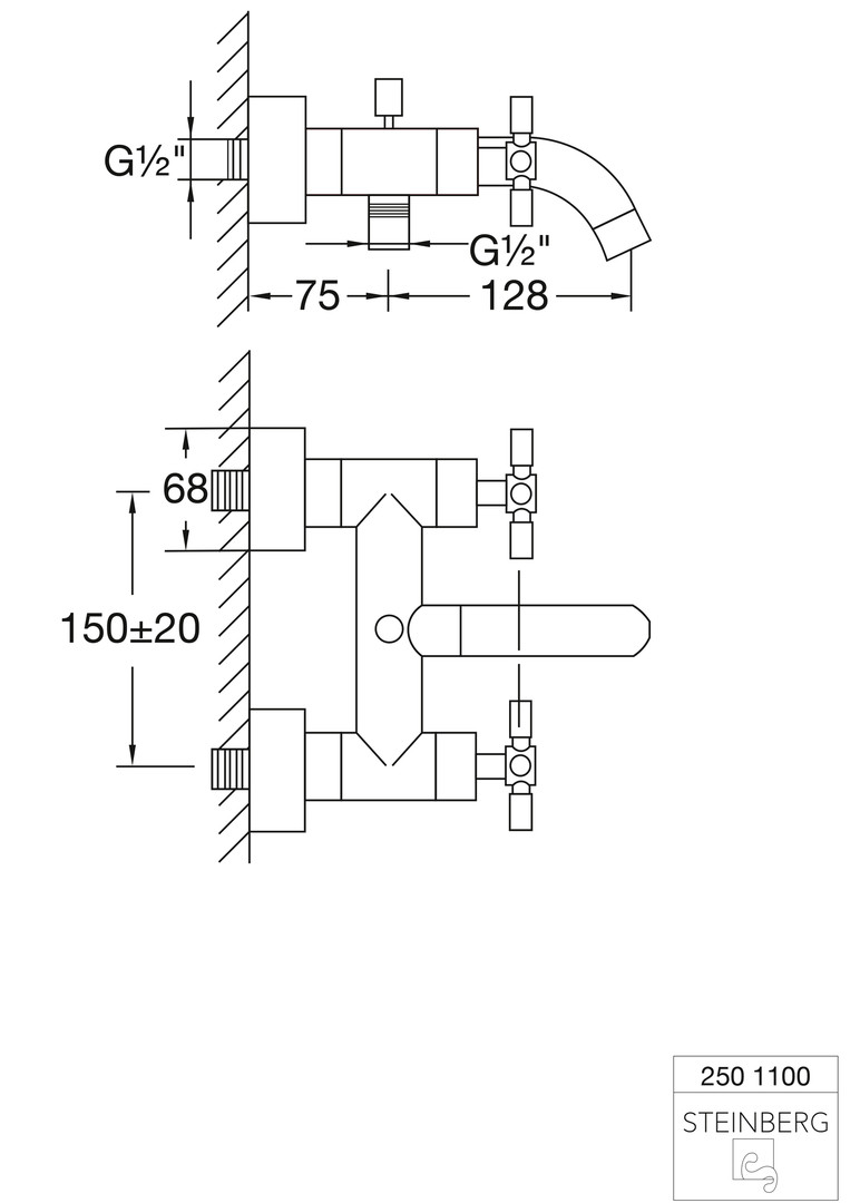 Steinberg Wannen-Zweigriffarmatur Serie 250 Ausladung 203mm, chrome