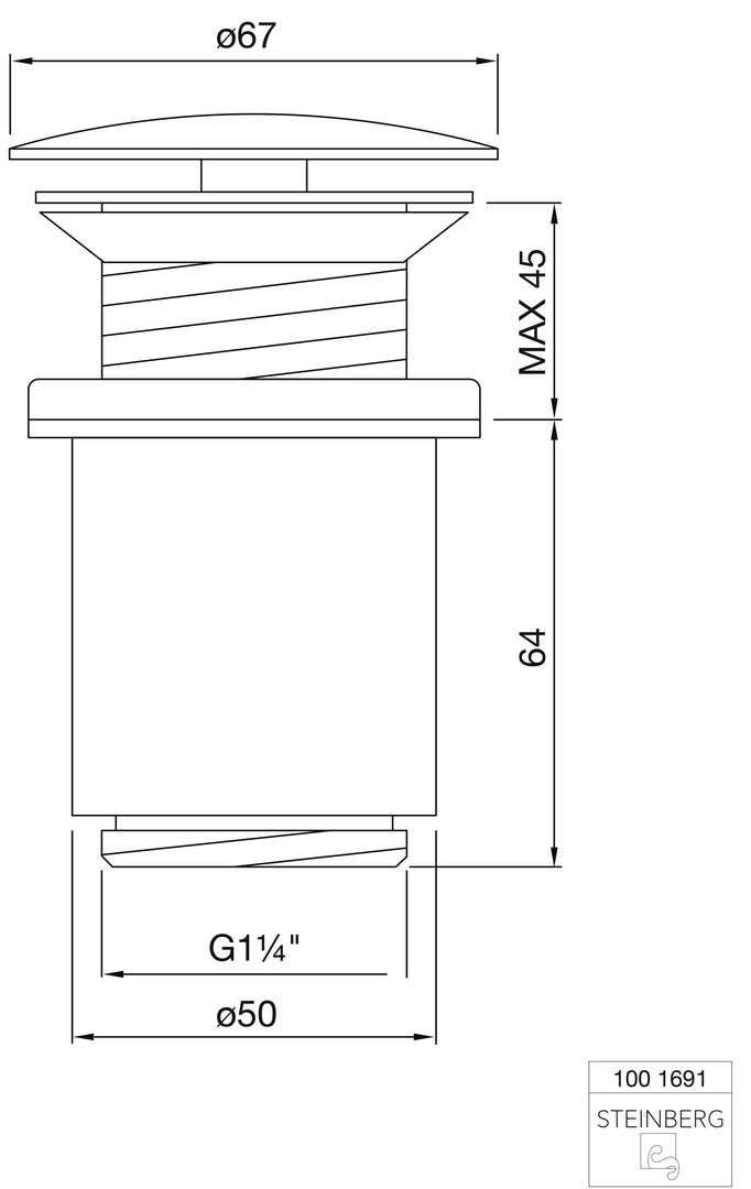 Steinberg Ablaufgarnitur Serie 100 mit Druckverschluss, für Waschtische ohne Überlauf, chrome ST1001691