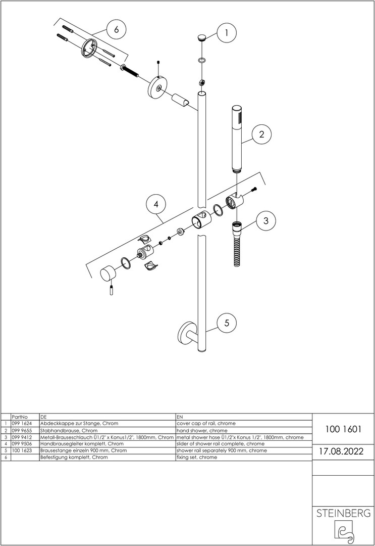 Steinberg Brausegarnitur Serie 100 Stange 900mm, mit Metallbrauseschlauch 1800mm, chrome ST1001601