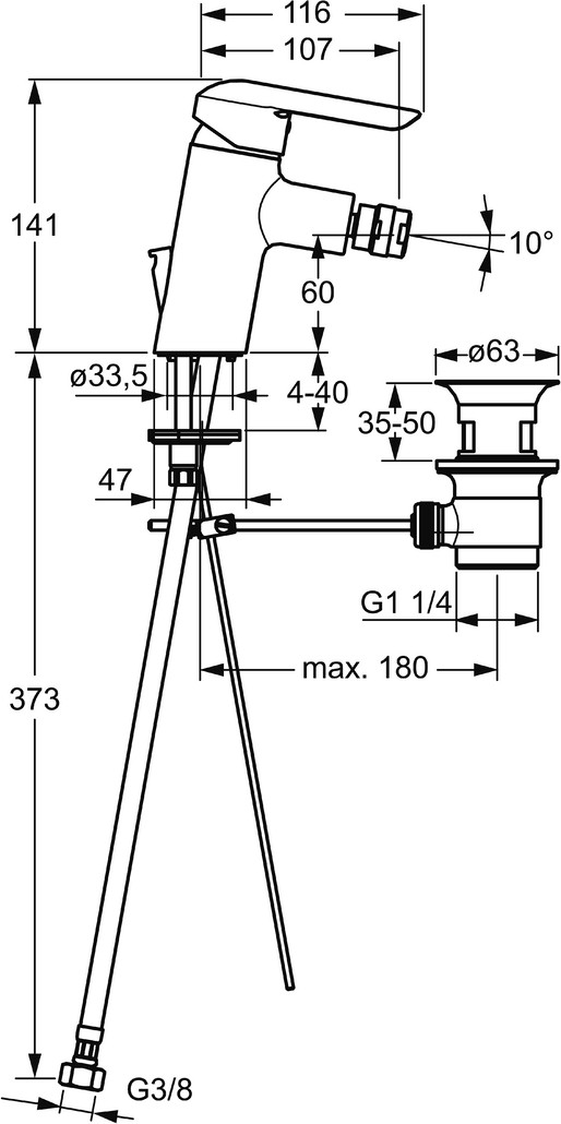 HANSA Bidet-Einhebelmischer HANSAVANTIS Style Auslauf 107mm, Hebel, chrom