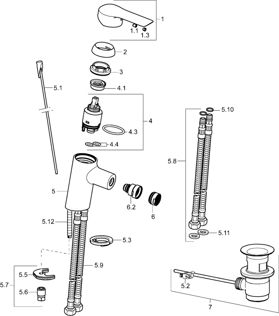 DN 15, Durchflussmenge 6 l/min, gemessen bei 3 bar Fließdruck, Heißwasserversorgung max. 80 °C, Armaturenkörper aus entzinkungsbeständigem Messing (DZR), Rapid-Montagesystem, Hebel mit W+K-Kennzeichnung, Temperaturbegrenzer, Heißwassersperre einstellbar, Anschluss über flexible Druckschläuche G 3/8, Ø 3.5 classic Steuerpatrone mit keramischen Dichtscheiben zur Wassermengen- und Temperatureinstellung, Strahlregler PCA konstante Durchflussleistung unabhängig vom Fließdruck, Kugelgelenk