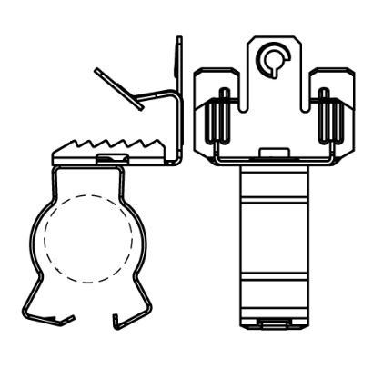 zur Befestigung unter Trägern ohne Schweißen und Bohren, geeignet für Rohr- und Kabelbefestigung horizontal, vertikal oder quer in Bezug auf den Träger, Kabelclip 360° drehbar, Kabelclip mit Sicherheitsverschluss (Zange zum Schließen verwenden), Oberflächenbeschichtung Delta-Tone 9000 (480 Stunden)