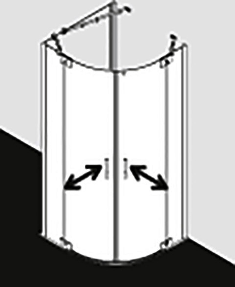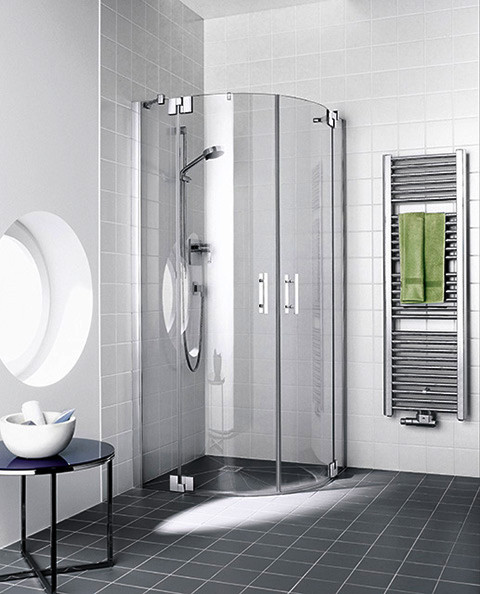 Kermi Viertelkreis-Pendeltür Filia XP mit Festfeldern 90x100x200 cm, silber hochglanz, ESG klar Clean, Radius 50 ZKFXP50V4120VPK