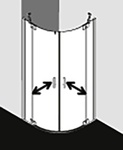 Kermi Viertelkreis-Pendeltür Filia XP mit Festfeldern 90x120x200 cm, silber hochglanz, ESG klar Clean, Radius 50