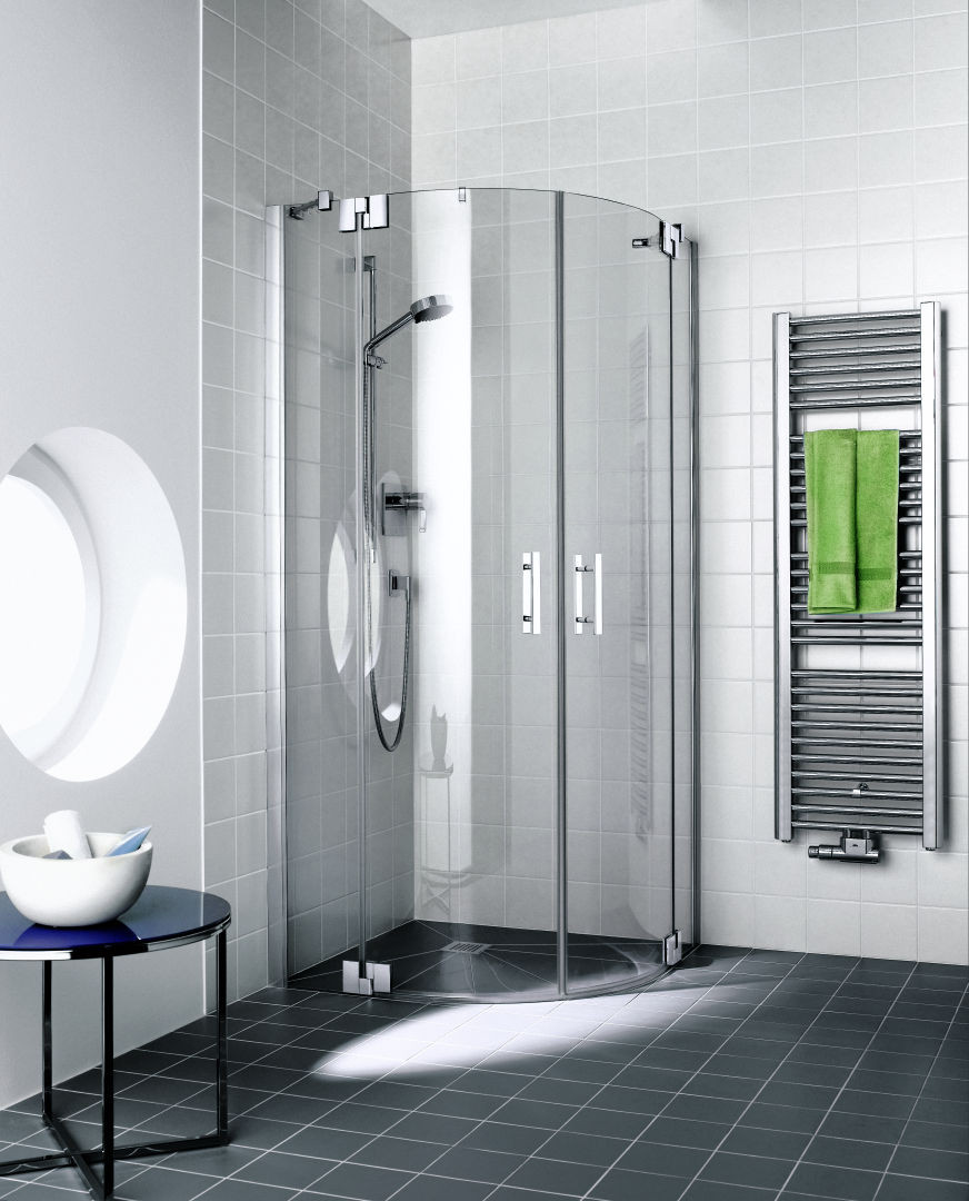 Kermi Viertelkreis-Pendeltür Filia XP mit Festfeldern 90x100x200 cm, silber hochglanz, ESG klar, Radius 50 ZKFXP50V4120VAK